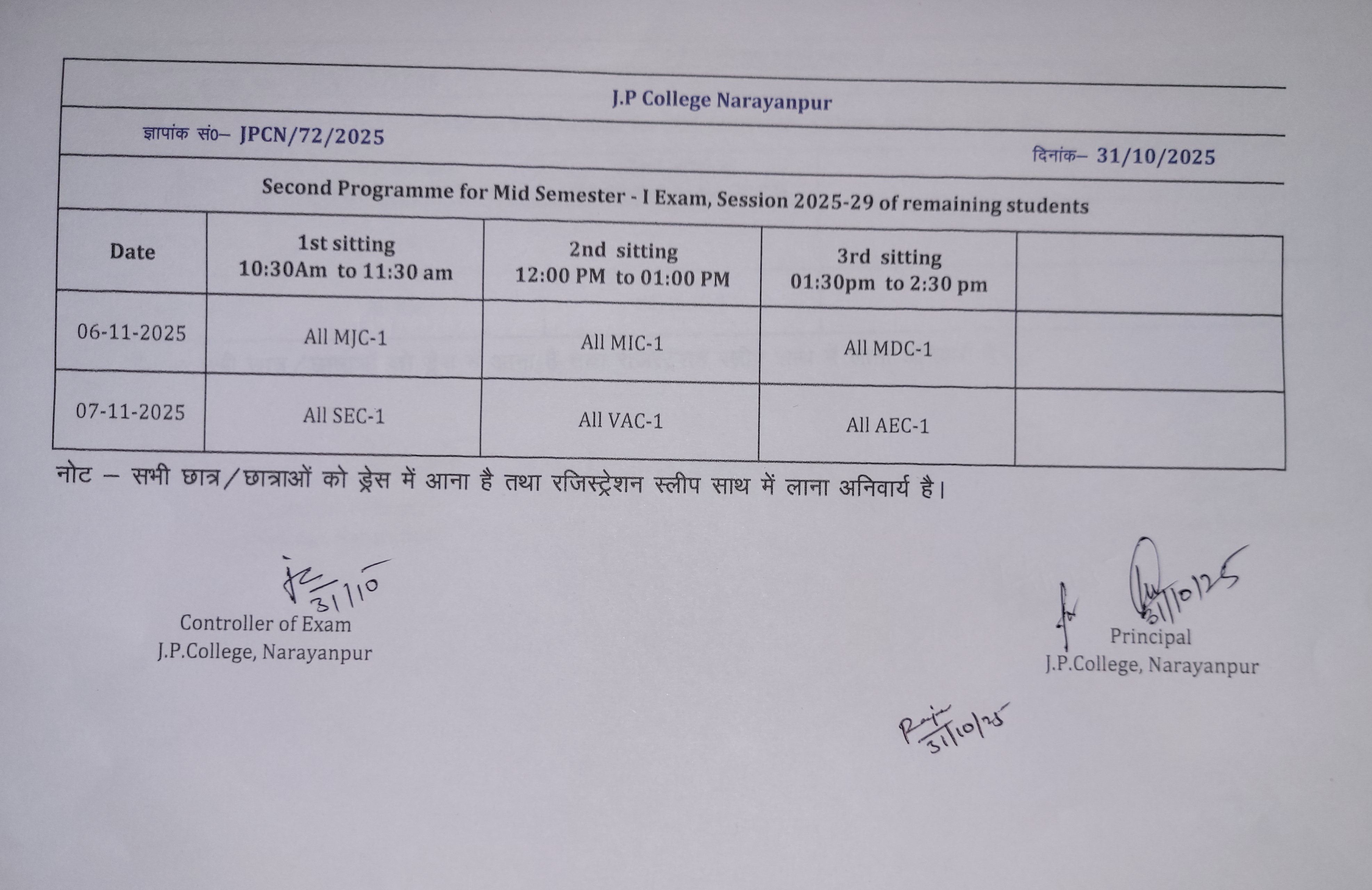 J.P. College, Narayanpur also provide some special short terms courses